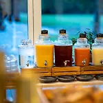 Οι πελάτες μπορούν να έχουν δωρεάν πρωϊνό σε μπουφέ κάθε πρωί. Το ξενοδοχείο Skanderborg Park προσφέρει το δικό του à la carte restaurant, όπου οι πελάτες μπορούν να δοκιμάσουν πιάτα Italiaanse. Οι πελάτες μπορούν να χαλαρώσουν στο lounge bar των εγκαταστάσεων. Διαθέτει επίσης σαλόνι για την άνεση των πελατών.